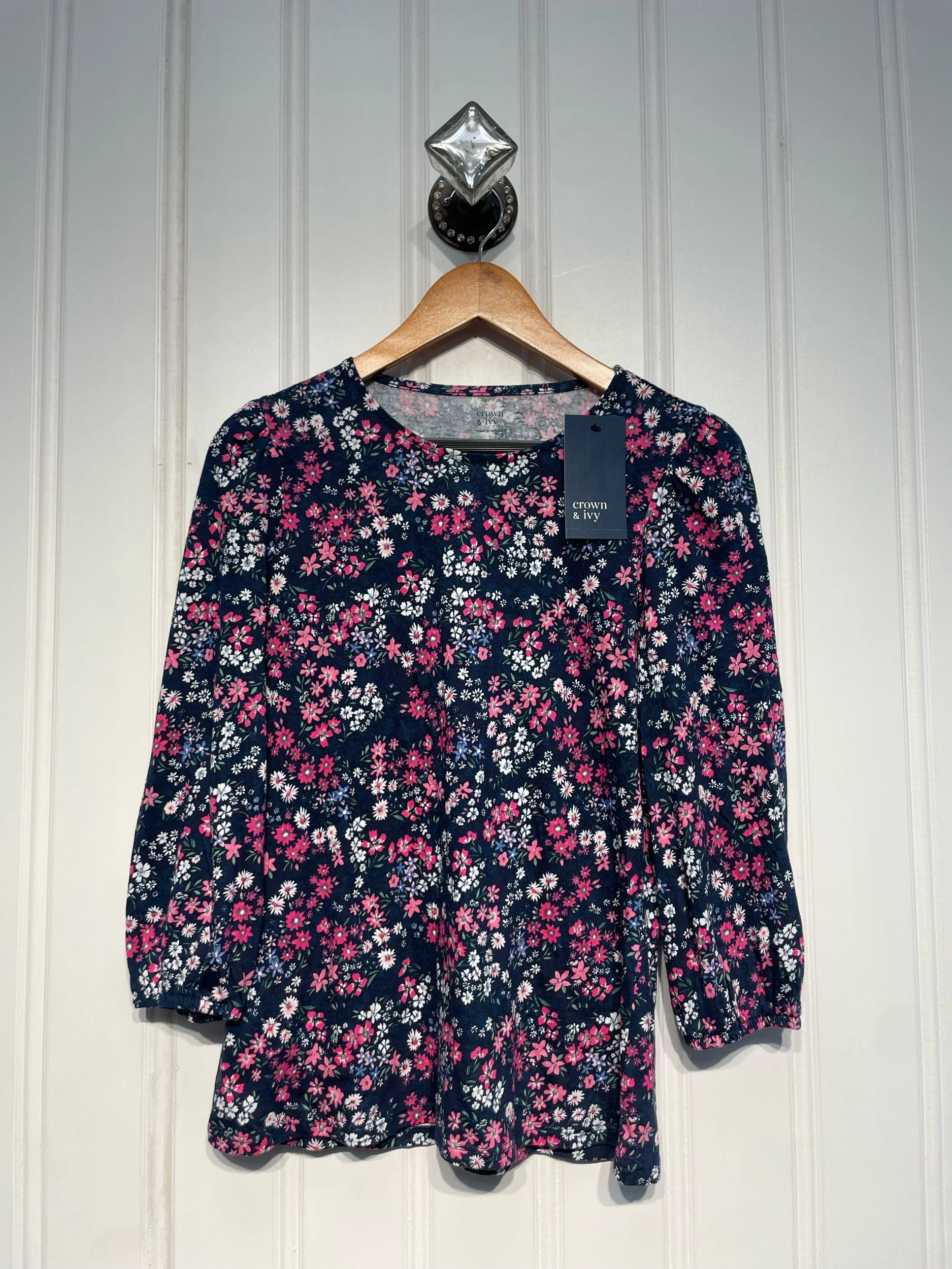 Shop › NWT Ladies ^ Crown and Ivy Shirt Size S Image 1 of 1 NWT Ladies ^ Crown and Ivy Shirt Size S $14.00 NWT; Retails for $34.50 Add To Cart Added! NWT; Retails for $34.50